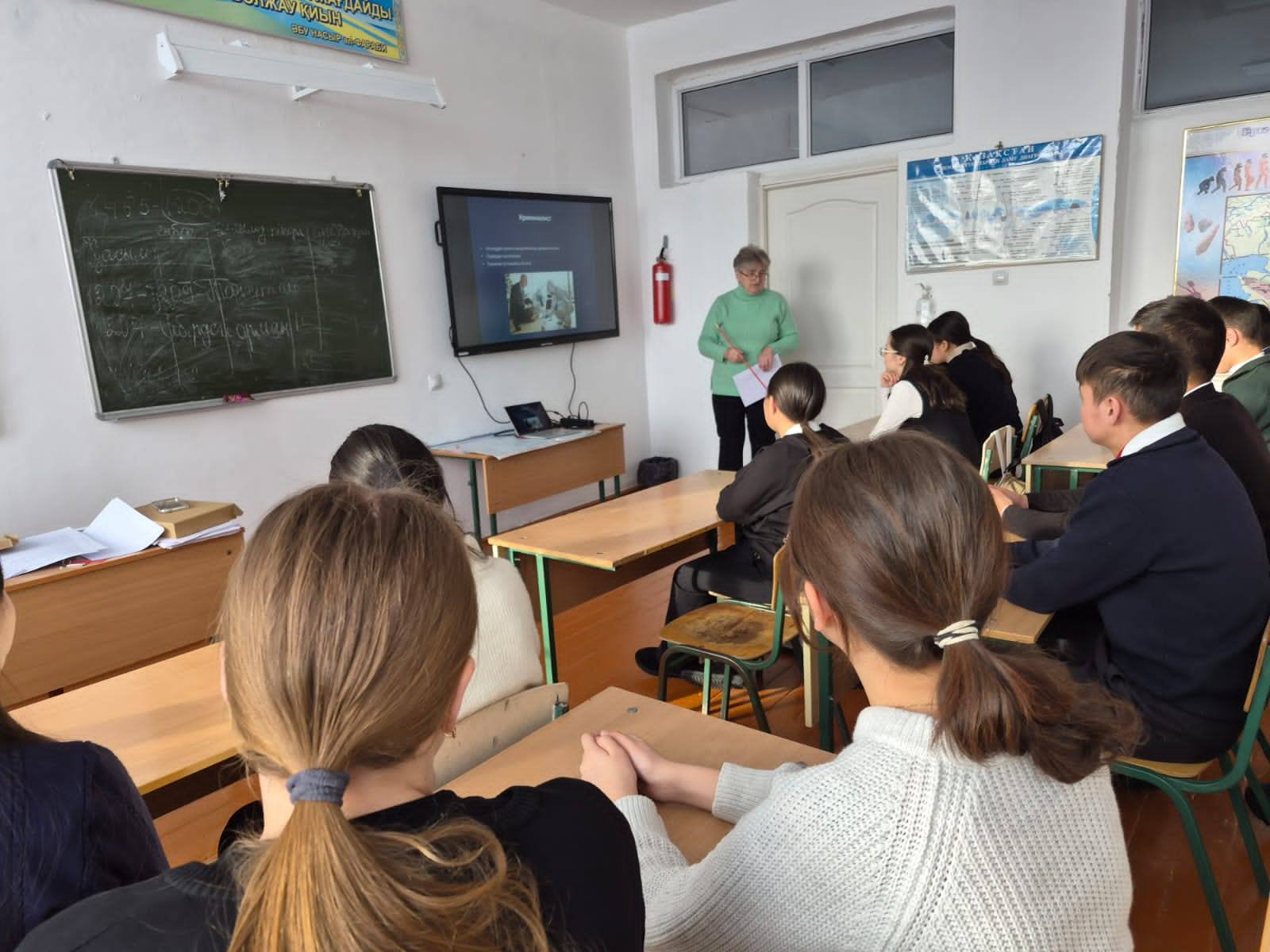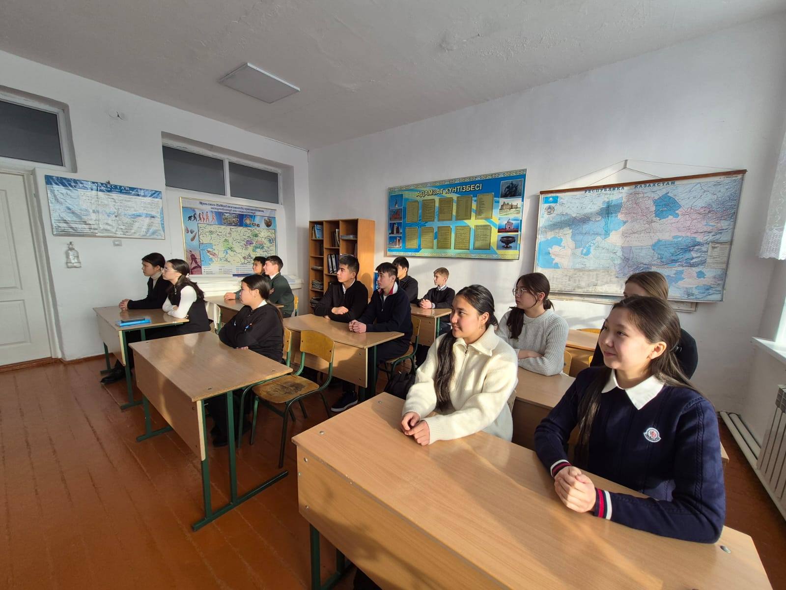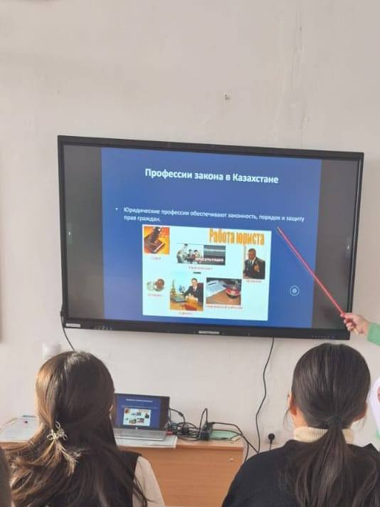 “Адал азамат” біртұтас тәрбие бағдарламасы аясында “Заң және тәртіп” құндылығы бойынша құқықтық білім беру айлық жоспарына сәйкес жоғары сынып оқушыларына арналған «Заң мамандықтары» тақырыбында кәсіптік бағдар беру мамандары мамандық туралы түсіндірме жұмыстарын жүргізді. Оқушылар тарапынан сұрақтар қойылды.
