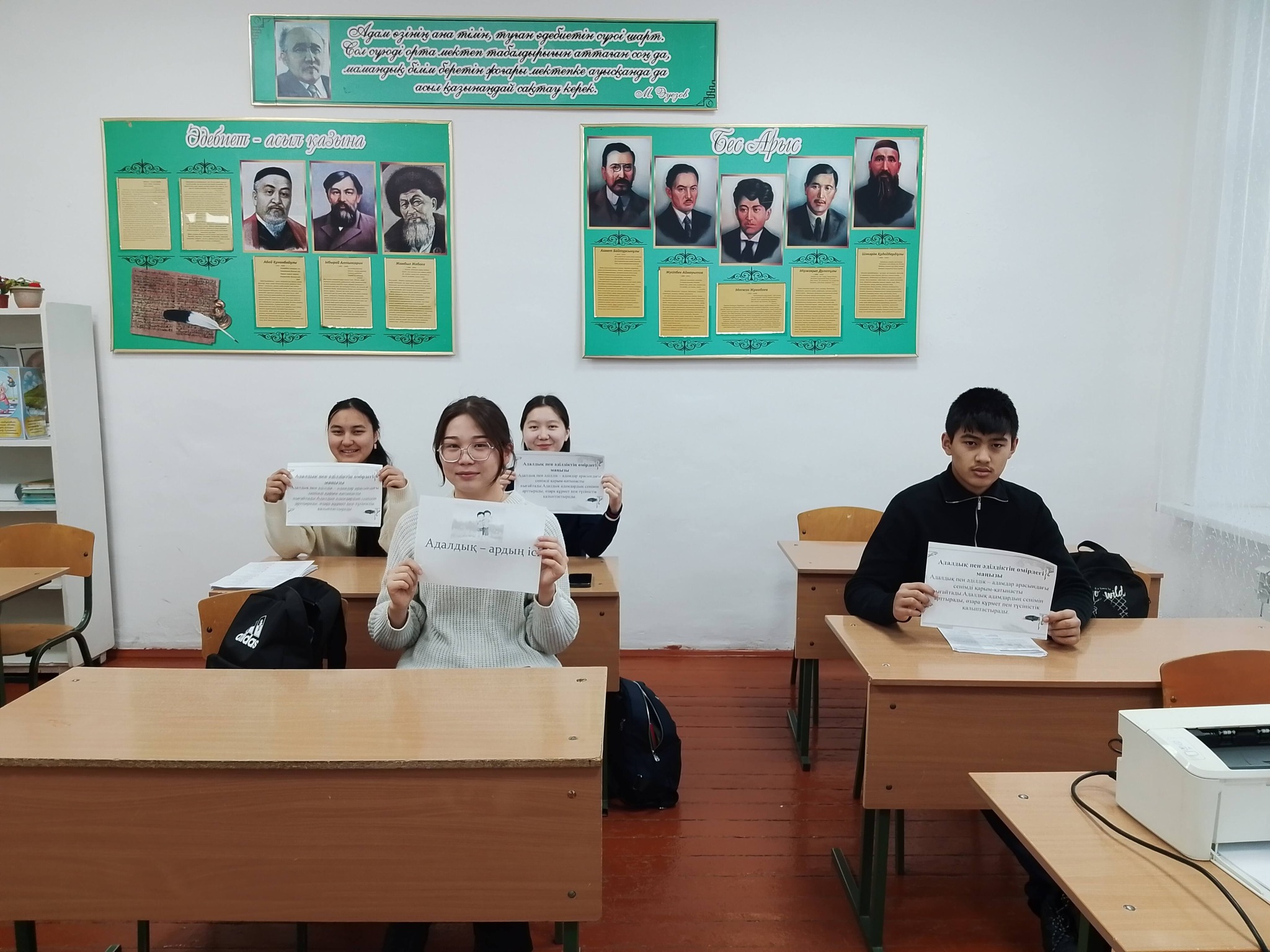 Мектебімізде Адал азамат біртұтас тәрбие аясында “Заң және тәртіп” айлық жоспары бойынша «Адалдық пен әділдік» тақырыбында 1-11 сынып аралығында сынып сағаты өтті.