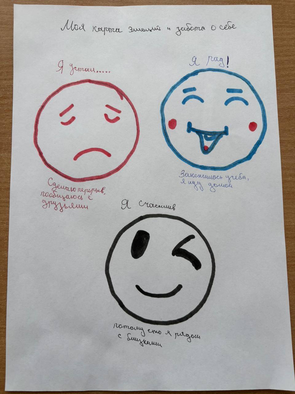 «Позитивті мағыналар аумағы» декадасы аясында 07.02.2026 ж. – «Эмоциялар картасы және өз-өзіне қамқорлық» күні өтті. Бұл күні біз өз сезімдерімізді түсінуді және өзімізге жанашырлықпен қолдау көрсетудің жолдарын үйрендік. Өз-өзіне қамқорлық күні аясында балалар өздерінің эмоциялар картасын жасап, «Мен не сезінемін және өзімді қалай қолдай аламын?» деген сұрақтарға жауап іздеді.