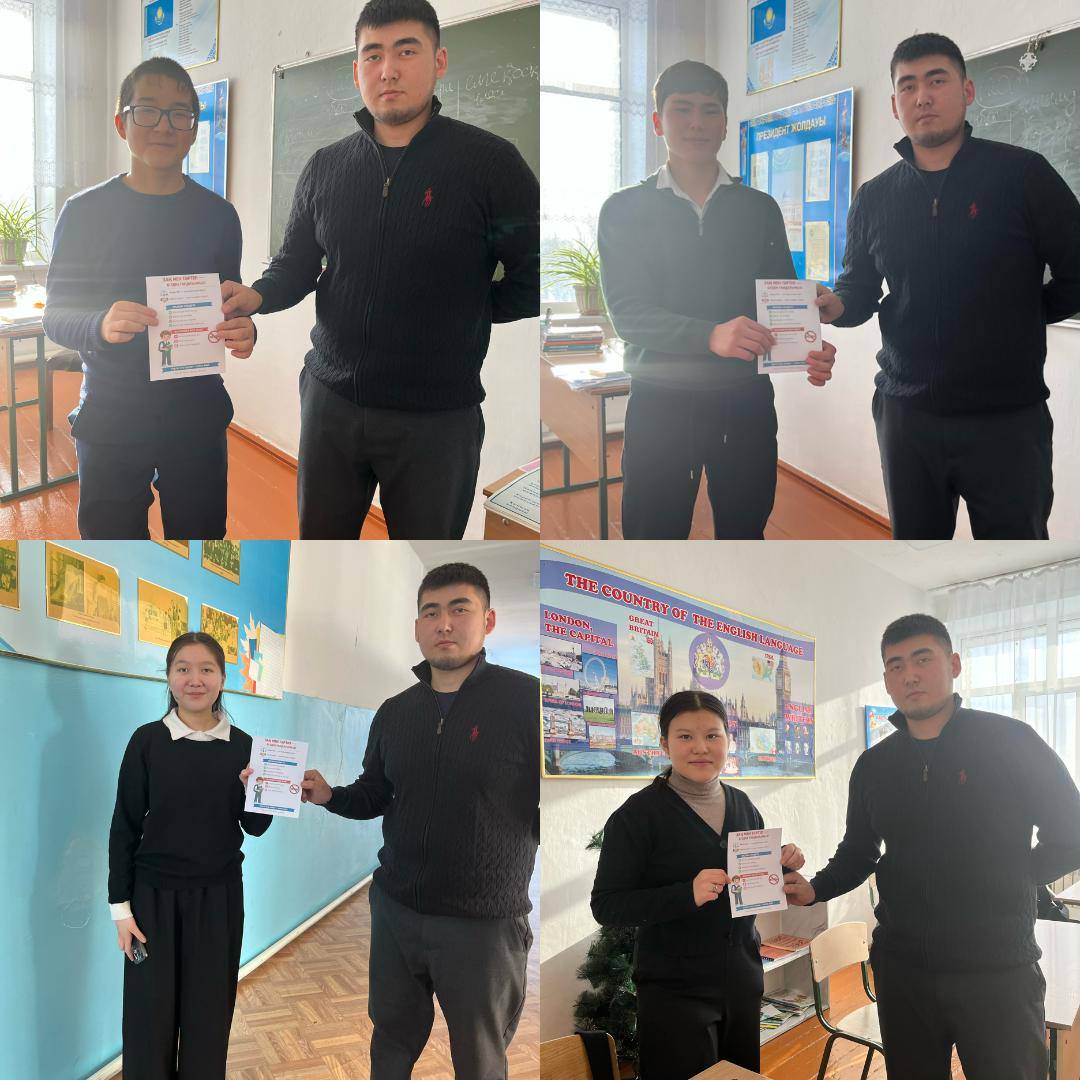 "Заң және тәртіп" айлығын өткізу аясында білім алушылар арасында "Заң өзіңнен басталады"атты ақпараттық жадынамалар таратылды. Жадынамаларда кәмелетке толмағандардың құқықтары мен міндеттері, құқық бұзушылықтар үшін жауапкершілік түрлері, сондай-ақ қоғамдағы заңнама нормалары мен мінез-құлық ережелерін сақтаудың маңыздылығы туралы ақпарат қамтылған.