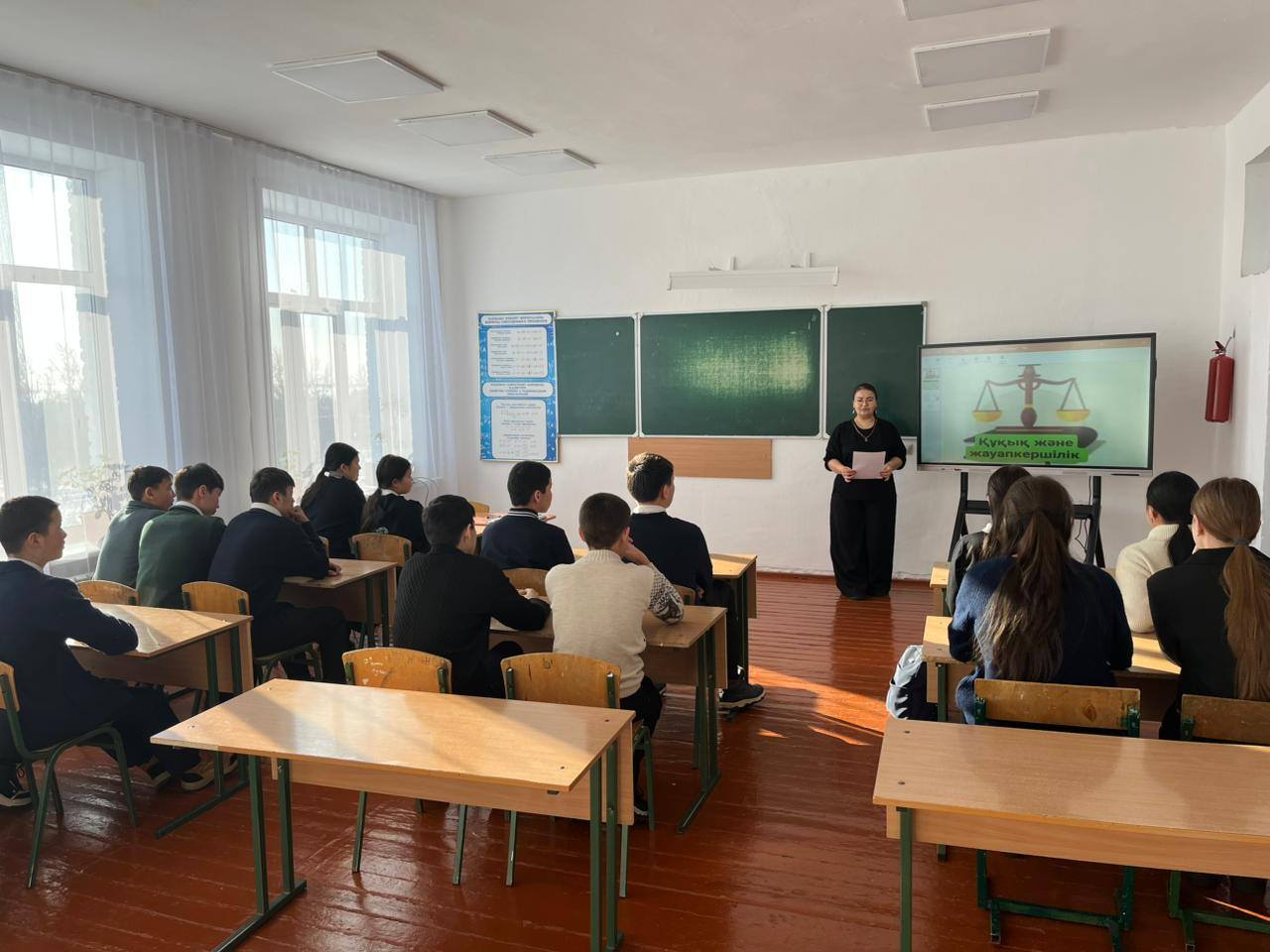28 қаңтар күні "Озерный жалпы орта білім беретін мектебі"КММ жоғары сынып оқушылары арасында «Құқық және жауапкершілік» атты ақпараттық сағат өтті. Мақсаты: Жасөспірімдердің құқықтық сауаттылығын арттырып, жауапкершілікті сезінуге баулу. Қоғамдағы тәртіп әрбір адамның өз іс-әрекетіне деген жауапкершілігінен басталатыны түсіндірілді.
