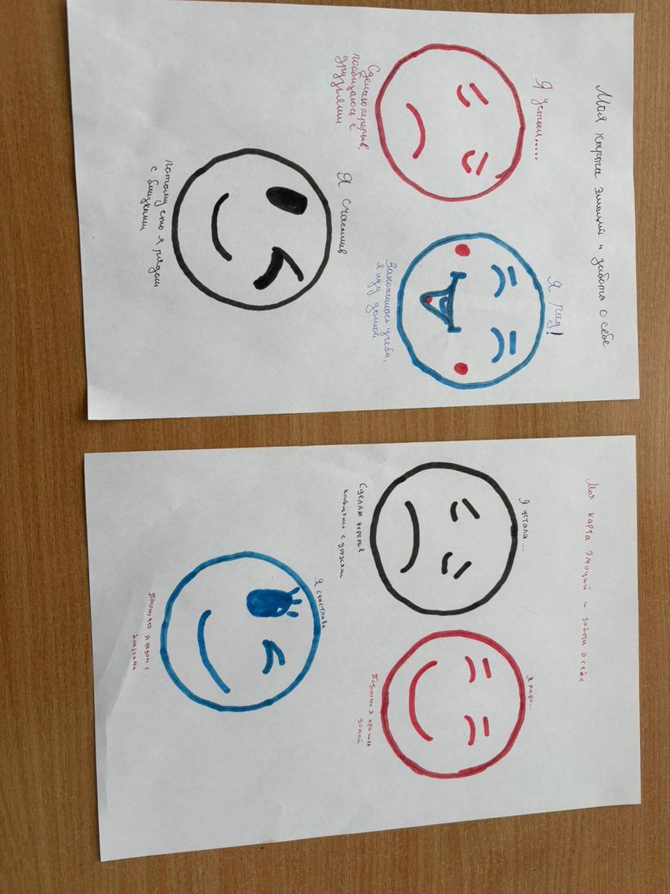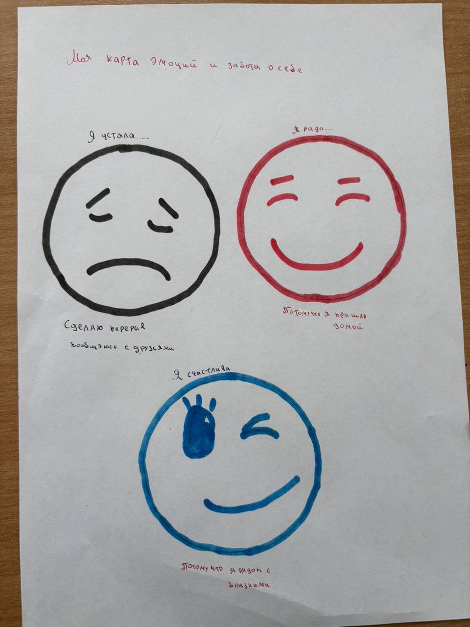 «Позитивті мағыналар аумағы» декадасы аясында 07.02.2026 ж. – «Эмоциялар картасы және өз-өзіне қамқорлық» күні өтті. Бұл күні біз өз сезімдерімізді түсінуді және өзімізге жанашырлықпен қолдау көрсетудің жолдарын үйрендік. Өз-өзіне қамқорлық күні аясында балалар өздерінің эмоциялар картасын жасап, «Мен не сезінемін және өзімді қалай қолдай аламын?» деген сұрақтарға жауап іздеді.