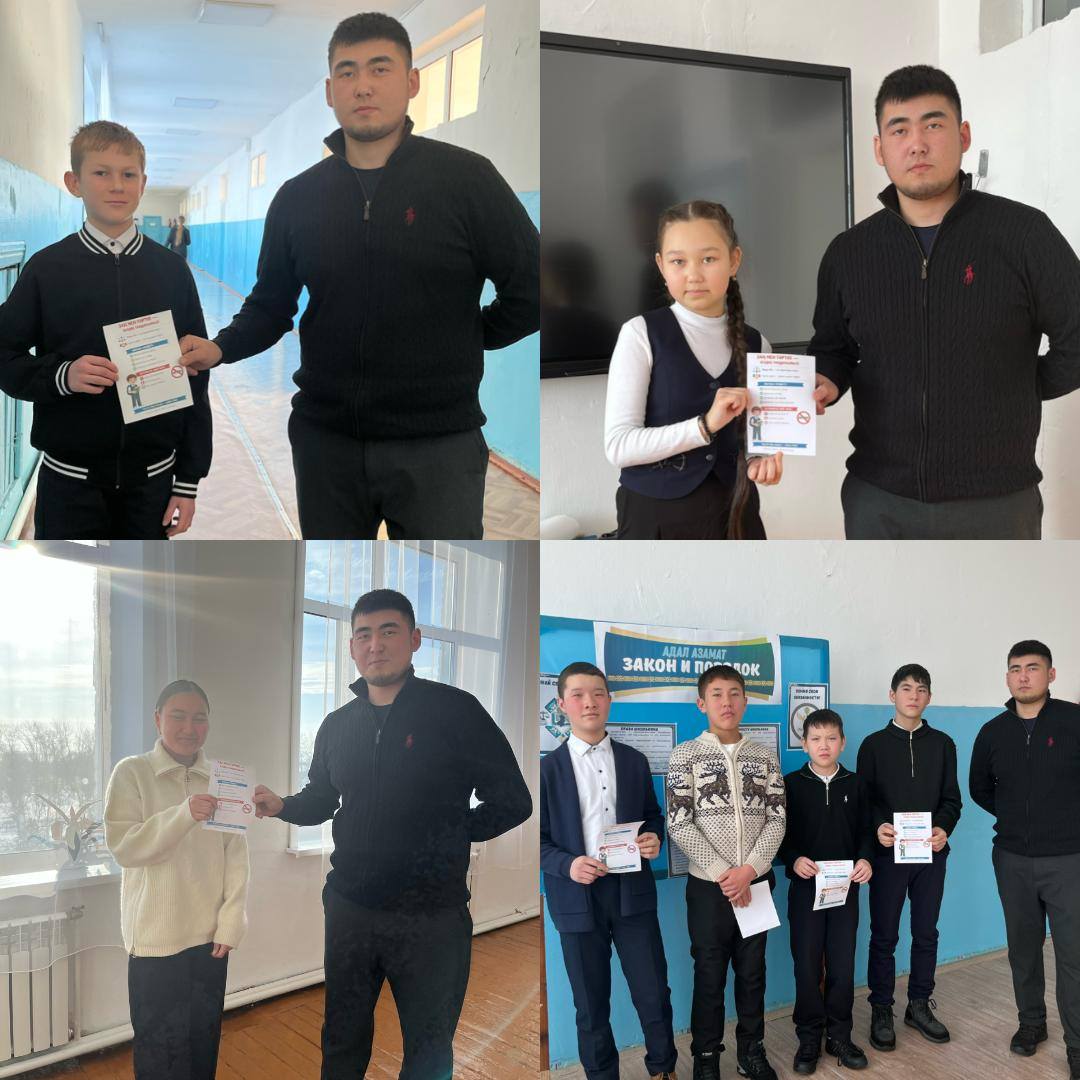 "Заң және тәртіп" айлығын өткізу аясында білім алушылар арасында "Заң өзіңнен басталады"атты ақпараттық жадынамалар таратылды. Жадынамаларда кәмелетке толмағандардың құқықтары мен міндеттері, құқық бұзушылықтар үшін жауапкершілік түрлері, сондай-ақ қоғамдағы заңнама нормалары мен мінез-құлық ережелерін сақтаудың маңыздылығы туралы ақпарат қамтылған.